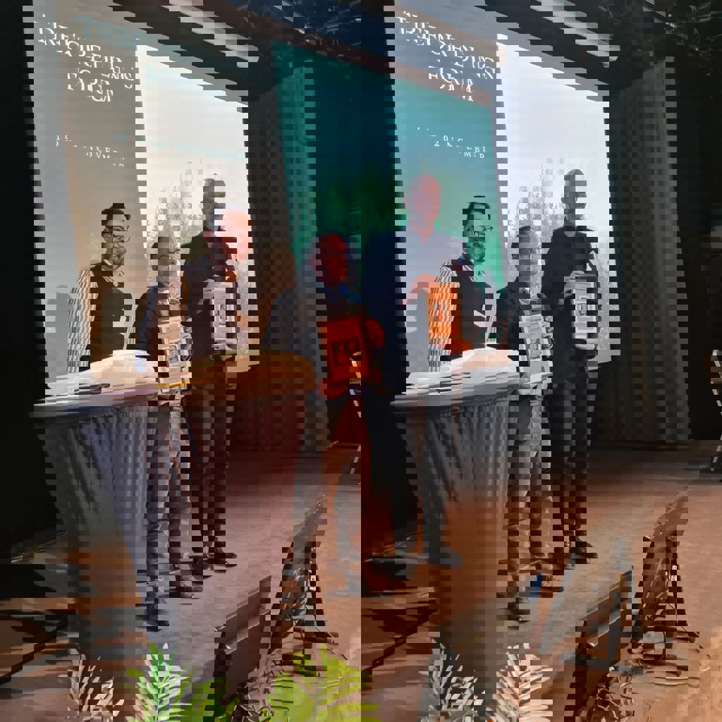 Et svært suksessfylt etterutdanningskurs ble arrangert for treforedlingsindustrien i fjor. Industrien etterspurte et kompetanseløft, og det fikk man også. Kurset samlet over 60 deltakere fra bransjen høsten 2023 og ga verdifull innsikt i råstoff, prosesser og produkter. Øyvind Gregersen og Størker Moe fra NTNU ledet kurset, og har i en årrekke stått for utdanningen av fagfolk til treforedlingsbransjen. Prisen ble delt ut av Martin Lersch på vegne av Stiftelsen.